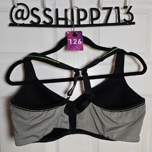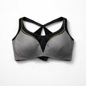 126 Torrid 44DD Gray Black Sports Bra with Green Accents Callouts Spot & Wear