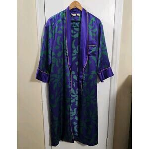 VTG 90s Victoria's Secret Gold Label Purple Green Floral Gold Piping Robe Sz P/S