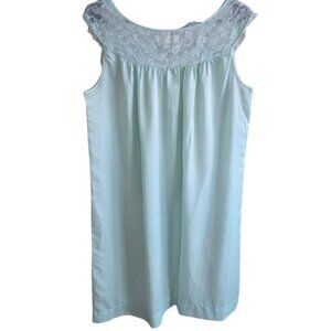 Keywords: nightie, loungewear, sleepwear, vintage style, feminine, lace detail, button front, short sleeve, pale blue, retro, delicate, lightweight, summer, satin de lys, cottagecore, grandmacore