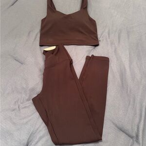 Elevate your style with this chic brown leggings and crop top set. Perfect for any occasion, this set offers comfort and a sleek design.
