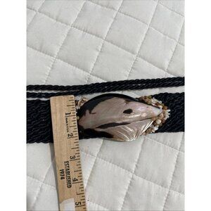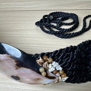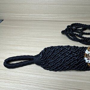Vintage Statement Shell Braided Belt Womens Waist 80s 90s Boho Black Beaded