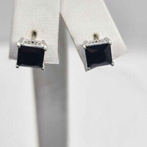 Timeless Black Gemstone Stud Earrings in 925 Sterling Silver (NEW)