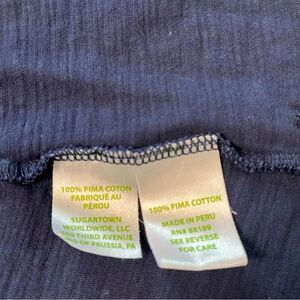 The Minka tank is a trapeze style tank top navy blue size XL. Wear this cotton tank with printed shorts for an easy summer outfit. This v-neck tank features back shirred band detail. 100% pima cotton.