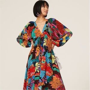 FARM Rio Black Cool Leopards Maxi Dress Large NWT