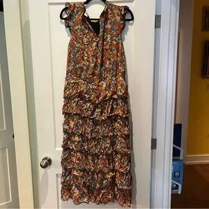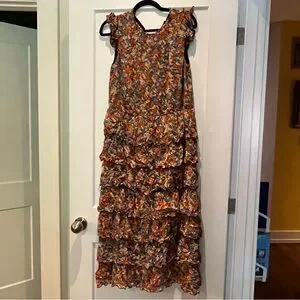 Vibrant floral midi dress. Features tiered layers. Excellent condition. Size S. approximate flat measurements: