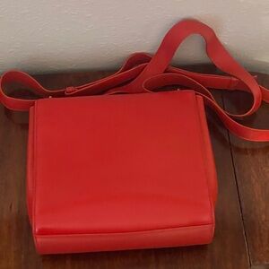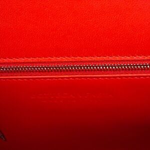 Chic red crossbody bag by Bottega Veneta. Features sleek silver detailing. Perfect for adding a pop of color.