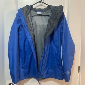 Columbia Bright Blue Hooded Rain Jacket Mesh Lining Sz M