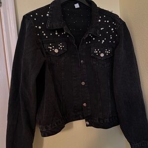 These brand new black denim jackets are perfect for matching with your special person! Jackets are comfortable and stylish for the winter and fall. The man denim jacket is Levis brand in a size medium and runs true to size. The woman denim jacket is a size 2xl but fits like a size medium and large since it runs extra small. For pictures with me wearing the jackets just let me know!