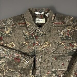 Vintage Eddie Bauer Men's L Elkhorn Canvas Shirt AOP Train Hunting Fishing 90s
