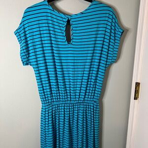 Chic Merona midi dress with blue and black stripes. Perfect to throw it on and go!