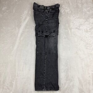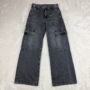 American Eagle Super High Rise Baggy Wide Leg Cargo Jeans Women 0 Short Black
