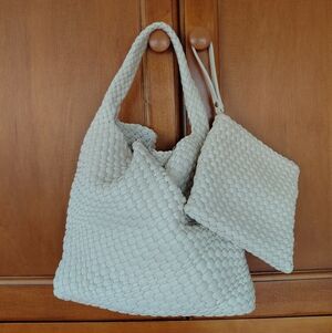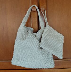 Rachel Zoe Ivory Woven Tote and Pouch Set