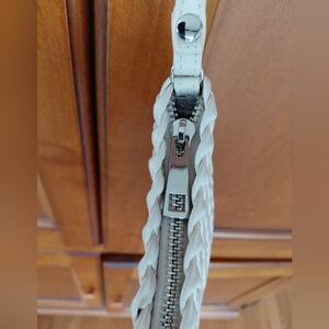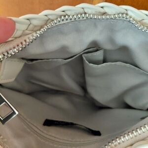 Questions? Leave a comment below! one hobo slouchy shoulder purse with magnet closure and one full zip wristlet with interior pockets. off white cream ivory color.