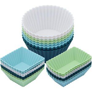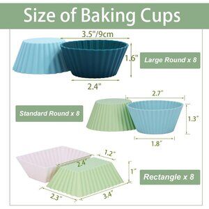 24Pack Silicone Muffin Cups, Reusable Cupcake Liners Molds for Baking, 3 Shapes