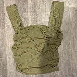 • Olive green ruched crop top