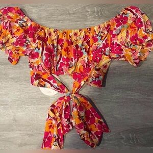 • Bright floral tie-front milkmaid crop top