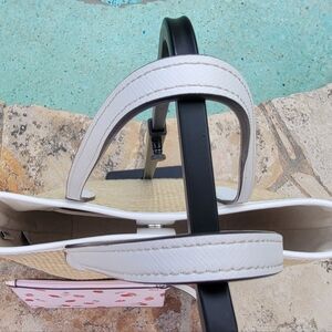 Excellent pre owned condition Kate Spade Picnic in the park strawberry tote and wristlet. Crafted with a woven straw exterior, smooth leather trim and a canvas lined interior. The natural straw body is accented by a playful embroidered strawberry on the front. A detachable wristlet pouch featuring the same strawberry motif. This bag is in excellent condition. A light shadowing on the bottom backside and a few very faint spots on the wristlet. Spotless interior features 1 zip pocket and 1 slip pocket. This tote effortlessly combines playful charm and summer aesthics with everyday functionality. Zoom into the pictures to view this bags condition.