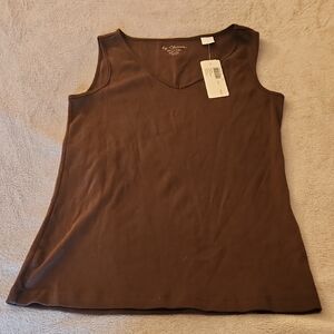 Chico's sleeveless tank in rich chocolate brown. Soft fabric. Versatile style.
