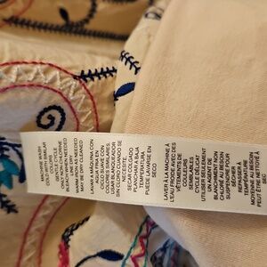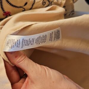 Chico’s Embroidered Tan Tiered Caftan Blouse, M/L, Boho, Floral, Festival