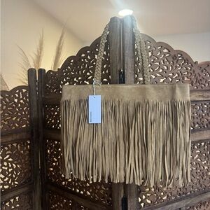 For carrying your entire life. Shop the Luna Tote from Reformation, a tote bag with an internal pocket, braided straps, and fringe detailing throughout.