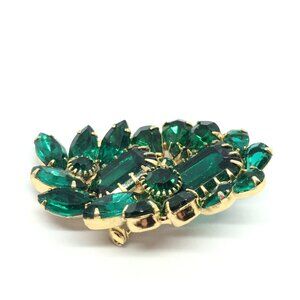 Perfect for collectors of vintage rhinestone jewelry, mid century costume jewelry, emerald green statement pieces, or classic holiday glam brooch sets.