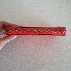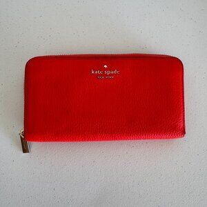 Kate Spade Bright Coral Leather Zip Wallet – Pebbled Leather Gold Hardware