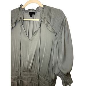Womens Anthropologie Current Air Cape May Sage Green Ruffled Midi Dress Sz Large