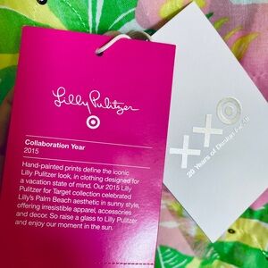 “Hand painted prints define the iconic Lilly Pulitzer look, in clothing designed for a vacation state of mind. Our 2015 Lily Pulitzer for Target Collection celebrated Lily‘s Palm Beach aesthetic in sunny style, offering irresistible apparel, accessories and decor. So raise a glass to Lily Pulitzer and enjoy our moment in the sun“.