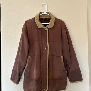 Vintage Women’s Flannel Lined Chore Work Barn Coat Jacket Corduroy Collar L