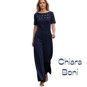 Chiara Boni Navy Luxury Designer Wide Leg Jumpsuit NWT 8