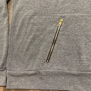 Aviator Nation Ninja Hoodie in Heather Grey Funnel neck with drawstring, Kangaroo pocket with zip closure. Brushed fleece with embroidered logo, unique gold zipper details.