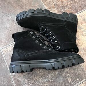 Paul Green Joaquin Genuine Shearling Boot Black Nubuck Women's Size 8 UK 10.5 US
