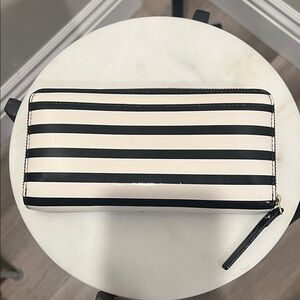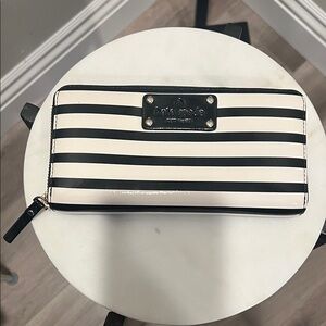 Elegant wallet with bold black and cream stripes. Sleek design for everyday use.