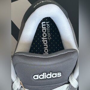 Classic Adidas sneakers with a gray and white look. Comfortable and stylish for any occasion. These sneakers have cloud foam cushion on the inside. Men’s size 11 fit size.