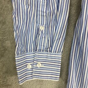 Calvin Klein Men's XL Blue White Stripe Button Down Dress Shirt 100% Cotton