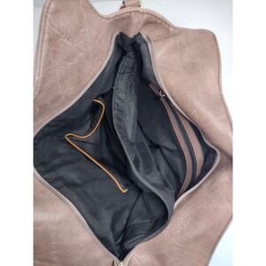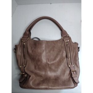 Y2K Taupe Faux Leather Hobo Bag Gold Hardware Buckle Detail Tote Zippers Brown