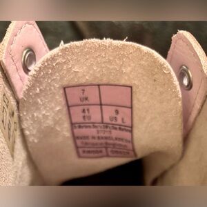 These boots are in good overall condition. There is some discoloration on the outside of the left boot, and some creasing throughout. They are very comfortable and I’m only selling them because they are too big for me. I am including a jar of pale mauve Tarragon brand shoe polish I purchased to clean them up.