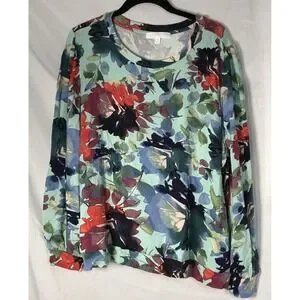 Adyson Parker Women's Long Sleeve Crew Neck Banded Floral Top - Size 2X