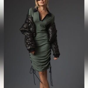 DAILY PRACTICE BY ANTHROPOLOGIE XS Petite LONG-SLEEVE COLORBLOCK POLO MIDI DRESS