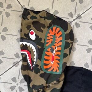 A Bathing Ape Bape Shark Gull Zip Black and Green Camo Hoodie, Men’s M