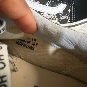 Stylish Vans sneakers with a unique cartoon design. Black and white color scheme. Comfortable and trendy.