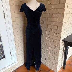 Lulus Feeling Flawless Navy Blue Velvet V-Neck Maxi Dress Formal Cocktail XS