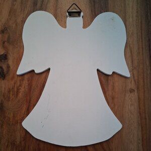 ◾ Design: Angel-shaped cut-out with a distressed white-wash finish. Features soft pink, purple, and green floral accents. The text is in an elegant black script font.