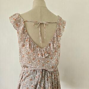 Melrose and Market Ruffle Peplum Tank M Ivory Beige Ditsy Floral Top