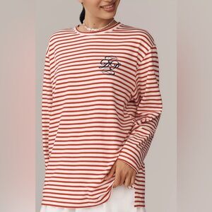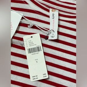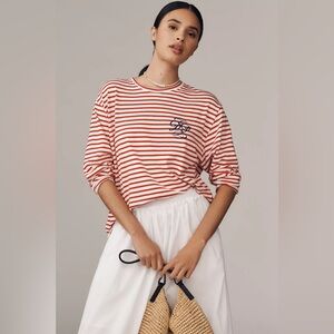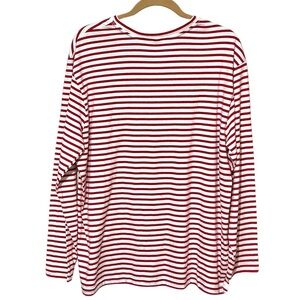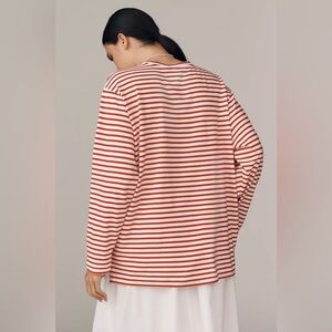 ANTHROPOLOGIE Daily Practice Cotton Long Sleeve Tee S 24” p2p Red/White $88 NWT