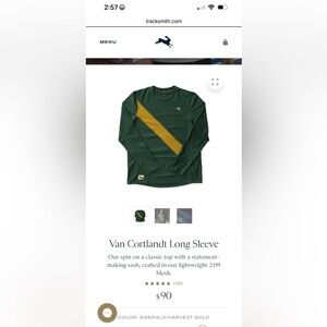 Tracksmith Men's Van Cortlandt Long Sleeve Green and Orange shirt