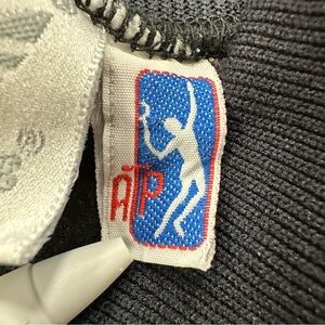 Vintage made in USA bomber style track jacket from Adidas. Black and red color way. Full zip open/closure. Waist hand pockets. Tagged with ATP (Association of Tennis Professionals) tag next to adidas size tag. Men’s size medium; measurements pictured.