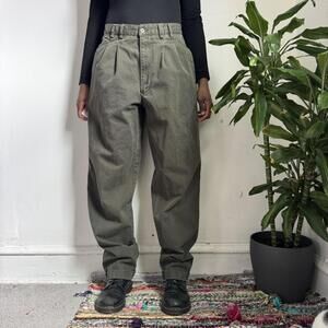 Vintage 90s G.H. BASS Olive Green Pleated Chinos - 34x34