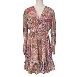 Guess Brigida Fit & Flare Pink Carousel Print Midi Dress Size L