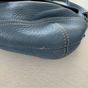 The bag is made of soft pebbled leather exterior and interior is lined. Silver hardware and original hangtag. There are a few marks/small amount of discoloration as shown